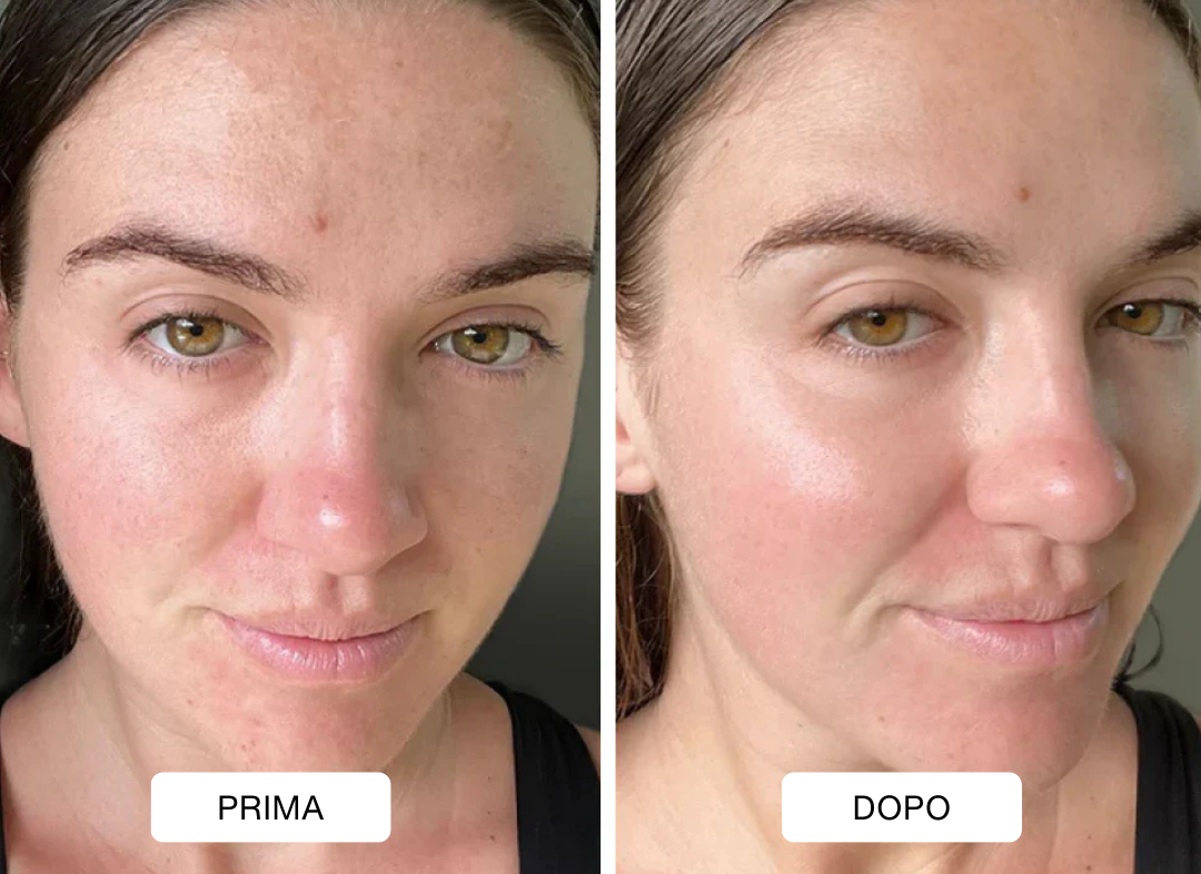 La combinazione di micro-correnti e luce rossa stimola la produzione di collagene, una proteina essenziale per mantenere la pelle più soda ed elastica. Risultato: rughe e linee sottili sono attenuate, e il viso appare visibilmente più giovane e tonico. - Incarnato luminoso e uniforme
